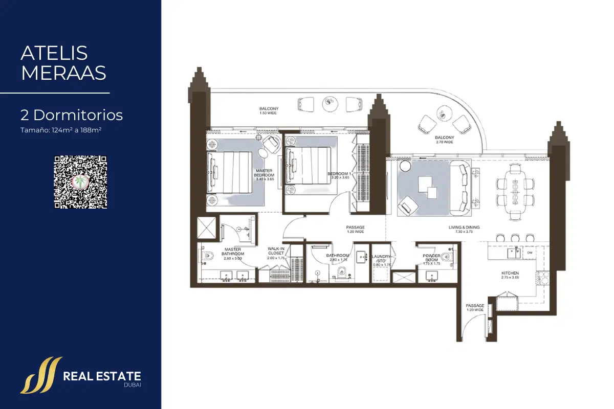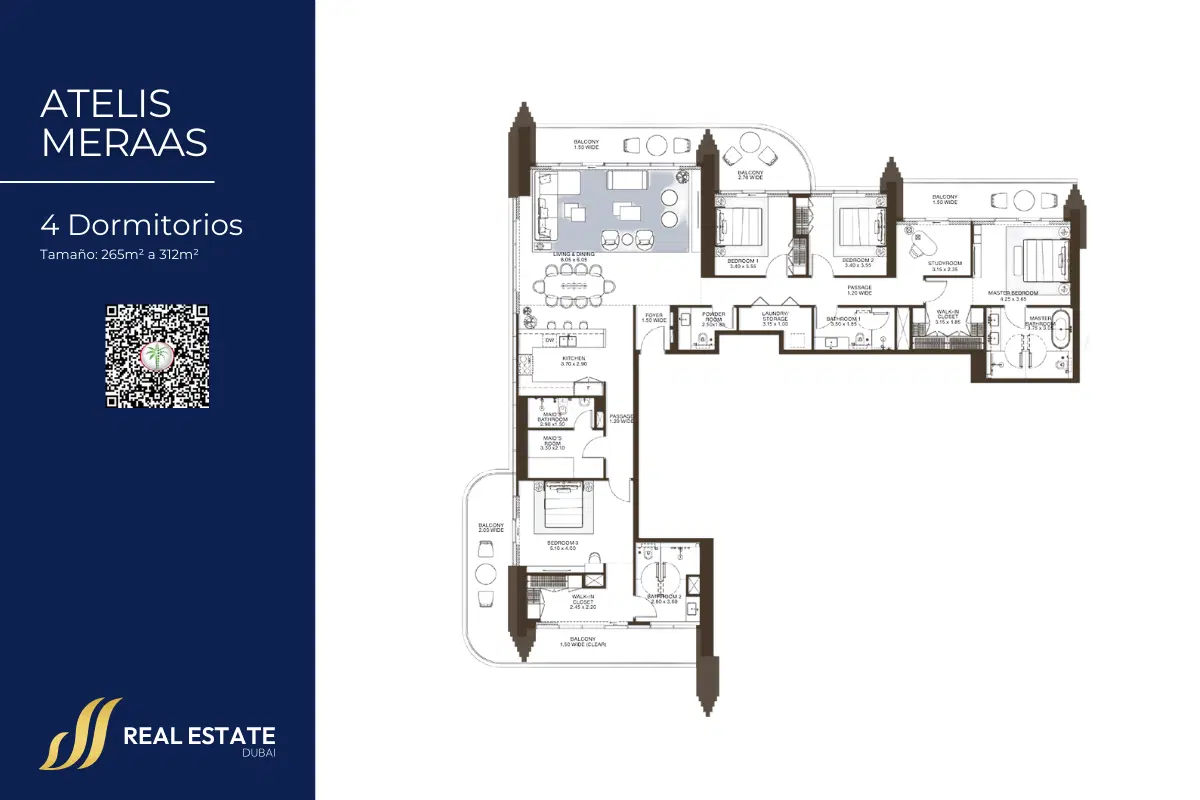 Variedad de unidades: Apartamentos de 1 a 4 dormitorios, sky villas de 4 dormitorios y penthouses de 5 dormitorios, diseñados con planos abiertos y balcones con vistas panorámicas