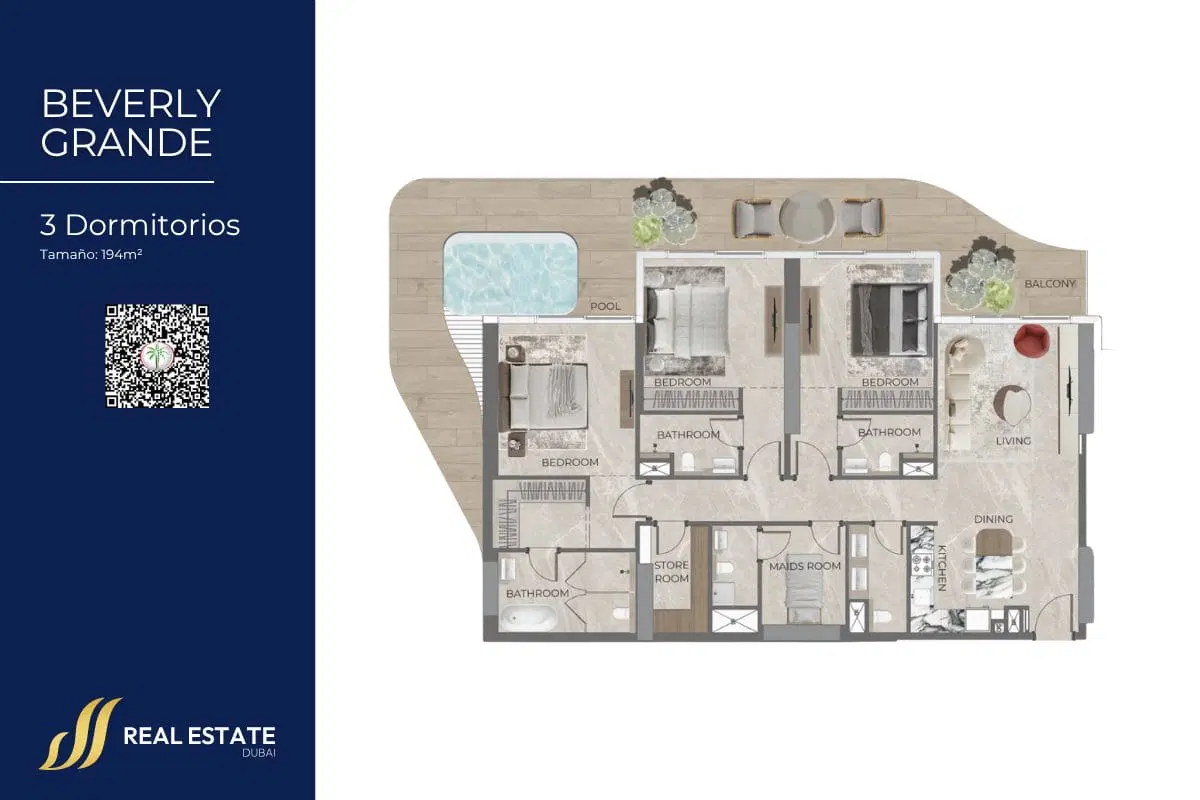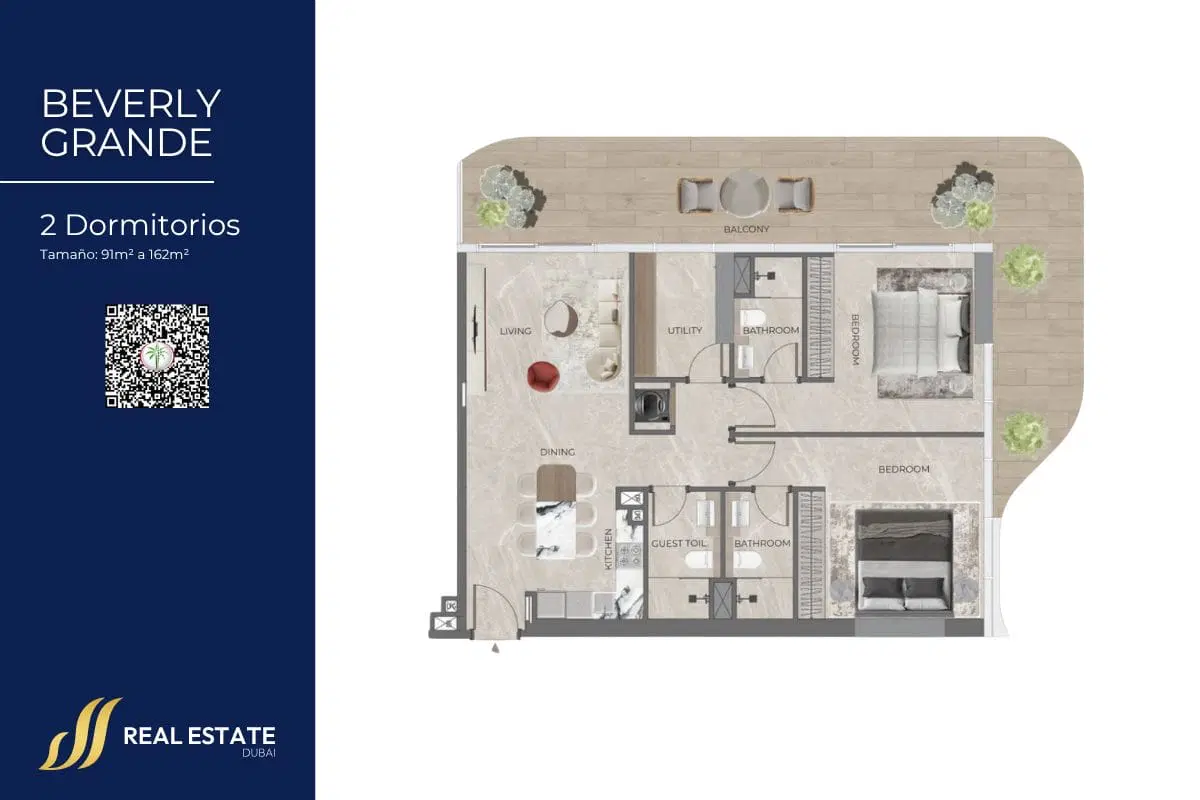 Beverly Grande es la nueva apuesta residencial de HMB Homes en una de las zonas con mayor proyección de Dubái: Motor City. Con un diseño arquitectónico contemporáneo y una estética urbana sofisticada, este proyecto se presenta como un nuevo ícono para quienes buscan calidad de vida, diseño y funcionalidad en un mismo lugar. Cada unidad ha sido concebida para ofrecer amplitud, luz natural y una sensación constante de armonía. Desde los elegantes apartamentos “Vista”, pensados para quienes buscan inspiración y dinamismo, hasta las residencias “Sanctuary”, que invitan al descanso y la desconexión, Beverly Grande redefine el concepto de hogar moderno. Un estilo de vida elevado en Beverly Grande Las amenidades de inspiración resort incluyen terrazas ajardinadas, piscinas, espacios sociales y zonas de bienestar pensadas para disfrutar tanto del tiempo en familia como de momentos de tranquilidad. Todo ello, en una comunidad consolidada con acceso a parques, restaurantes, colegios y futura conexión con el metro de Dubái.