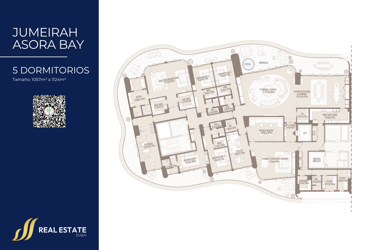 Variedad de Opciones Residenciales: Desde amplios apartamentos de 4 dormitorios hasta lujosos áticos de 7 dormitorios, cada unidad está diseñada para satisfacer las necesidades de familias de diversos tamaños, garantizando privacidad y comodidad