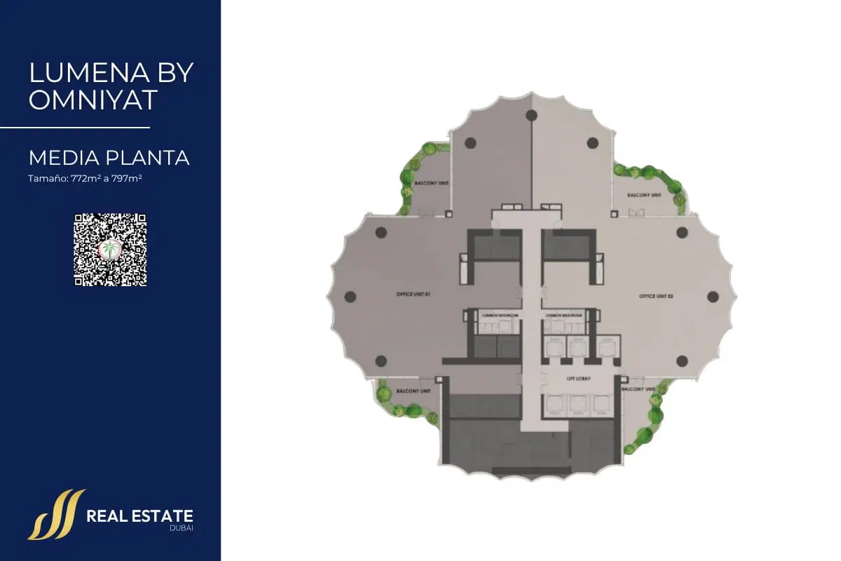 Ubicada en la entrada de Business Bay, LUMENA by OMNIYAT se presenta como una de las torres comerciales más ambiciosas de Dubái. Con 260 metros de altura y una silueta aerodinámica, esta obra maestra redefine el espacio de trabajo premium con una mezcla perfecta de arquitectura icónica, tecnología inteligente y experiencias de bienestar integradas. Diseñada para líderes visionarios, LUMENA no es solo un edificio: es un entorno de alto rendimiento. Con vistas abiertas al Burj Khalifa, Jumeirah Beach y el Golfo Arábigo, sus 91 oficinas han sido meticulosamente planificadas para ofrecer amplitud, luz natural y funcionalidad en cada rincón. Espacios que no solo inspiran, sino que impulsan el crecimiento. Una ubicación estratégica para negocios globales LUMENA se ubica en una posición inmejorable: junto a la Business Bay Metro Station y con conexión directa a Sheikh Zayed Road y Al Khail Road. Está a solo minutos del DIFC, Downtown y el aeropuerto de Dubái, situando a sus inquilinos en el corazón de las decisiones clave y del crecimiento empresarial. Por qué invertir en LUMENA by OMNIYAT LUMENA es una inversión en prestigio, visibilidad y proyección global. Su diseño único, las certificaciones de sostenibilidad y la gestión de OMNIYAT la posicionan como una de las mejores oportunidades comerciales de Dubái. Ideal para empresas que buscan establecer su presencia en la ciudad más dinámica del Medio Oriente.