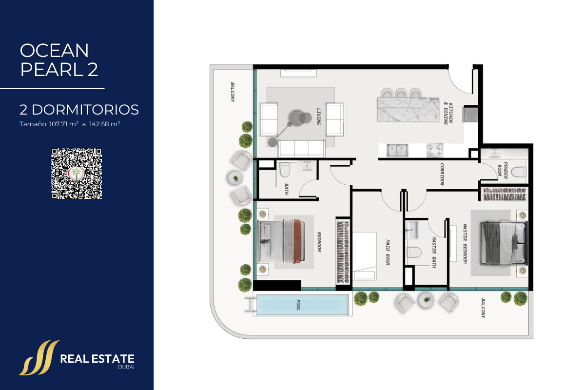 Servicios y Amenidades de Lujo: Incluye piscinas privadas, gimnasio de vanguardia, spa, áreas verdes ajardinadas, zona de juegos infantiles, salones sociales y espacios de coworking