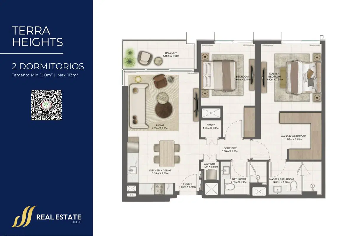 Terra Heights en Expo Living, desarrollado por Emaar Properties, ofrece apartamentos de 1 y 2 dormitorios con un diseño moderno y luminoso, rodeados de naturaleza y comodidades exclusivas. Ubicado en Dubai South, está a solo 5 minutos de Expo City y a 10 minutos del Aeropuerto Al Maktoum, ofreciendo una conexión privilegiada con los principales puntos de la ciudad. Con piscinas, gimnasio, canchas deportivas, mini-golf y zonas de juego, es ideal para un estilo de vida activo y familiar. Una inversión respaldada por la reputación de Emaar, en una comunidad vibrante y en crecimiento.